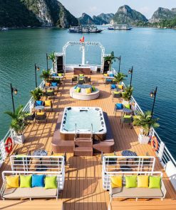 👉 Có, du khách sẽ được thư giãn trong bể Jacuzzi và tham gia tiệc hoàng hôn Sunset Party trên boong tàu.