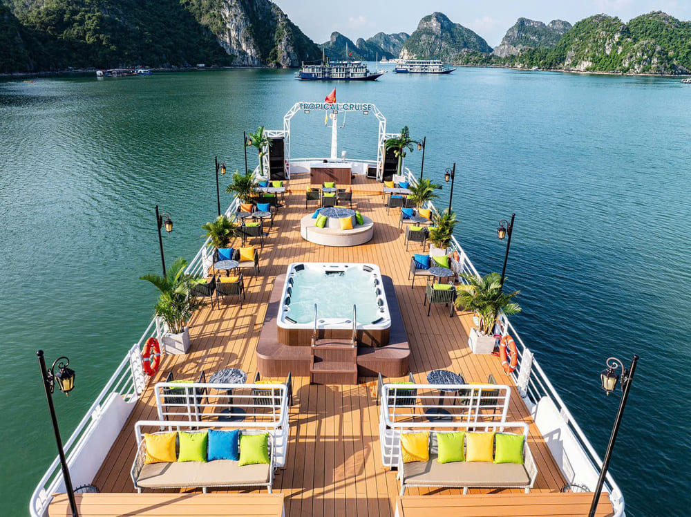 Trải nghiệm hành trình độc bản khám phá Vịnh Lan Hạ và đảo Cát Bà 1 ngày trên du thuyền 5 sao Tropical Cruise – một trong những du thuyền sang trọng nhất Vịnh Bắc Bộ.